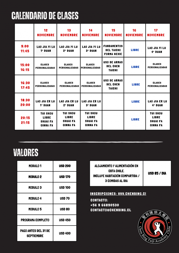 Chen Bing Taiji Academy Chile se complace en extender una cálida invitación al IX Campamento de Taiji Chen, dirigido por el Maestro Chen Bing.